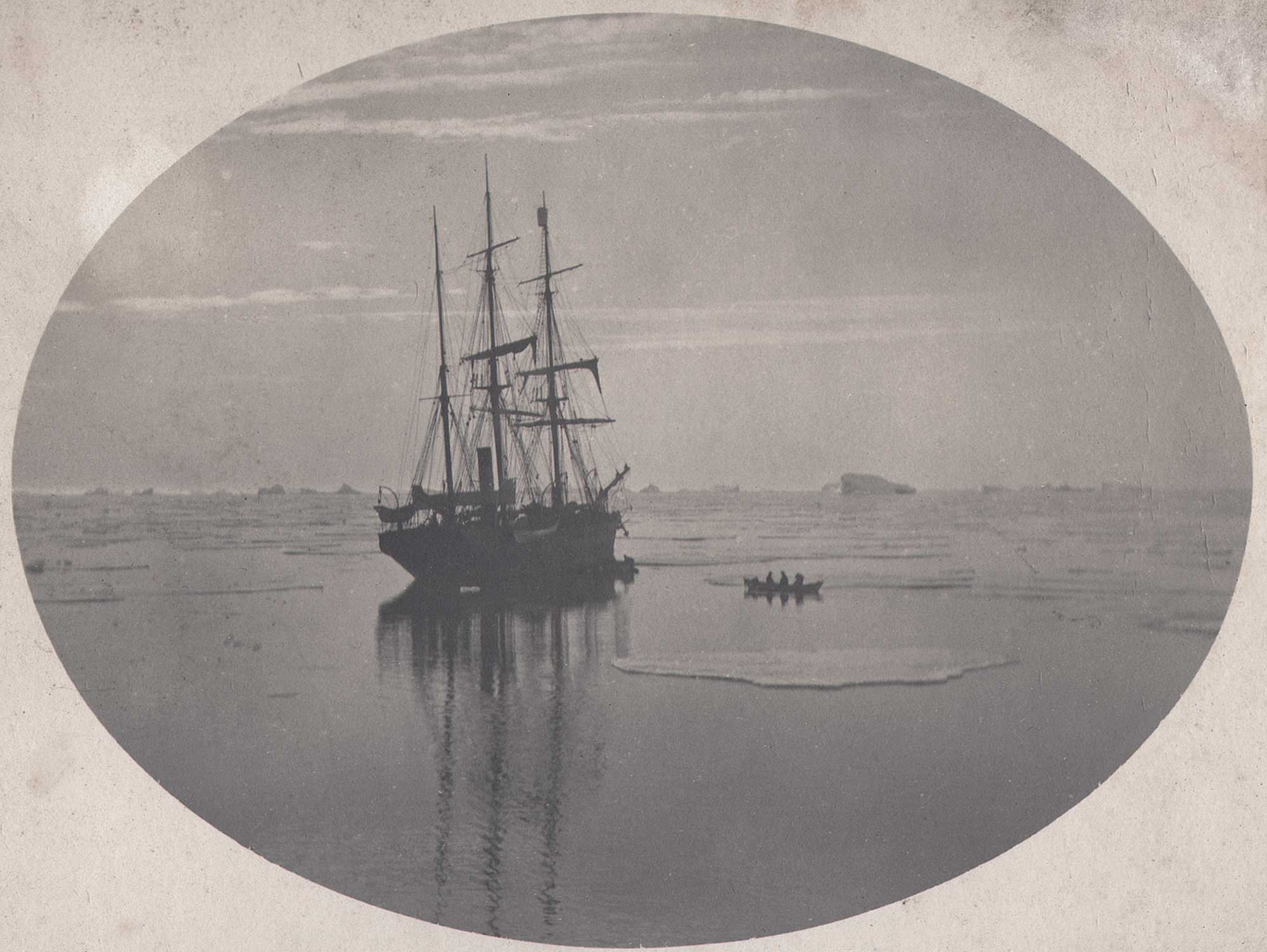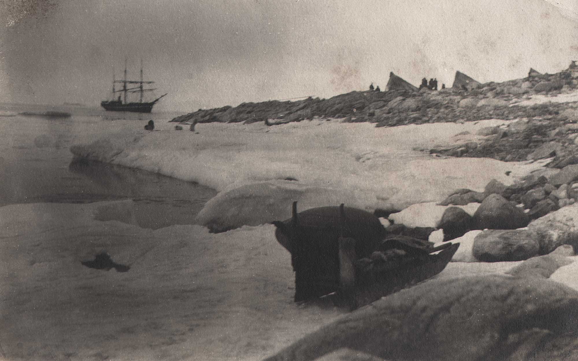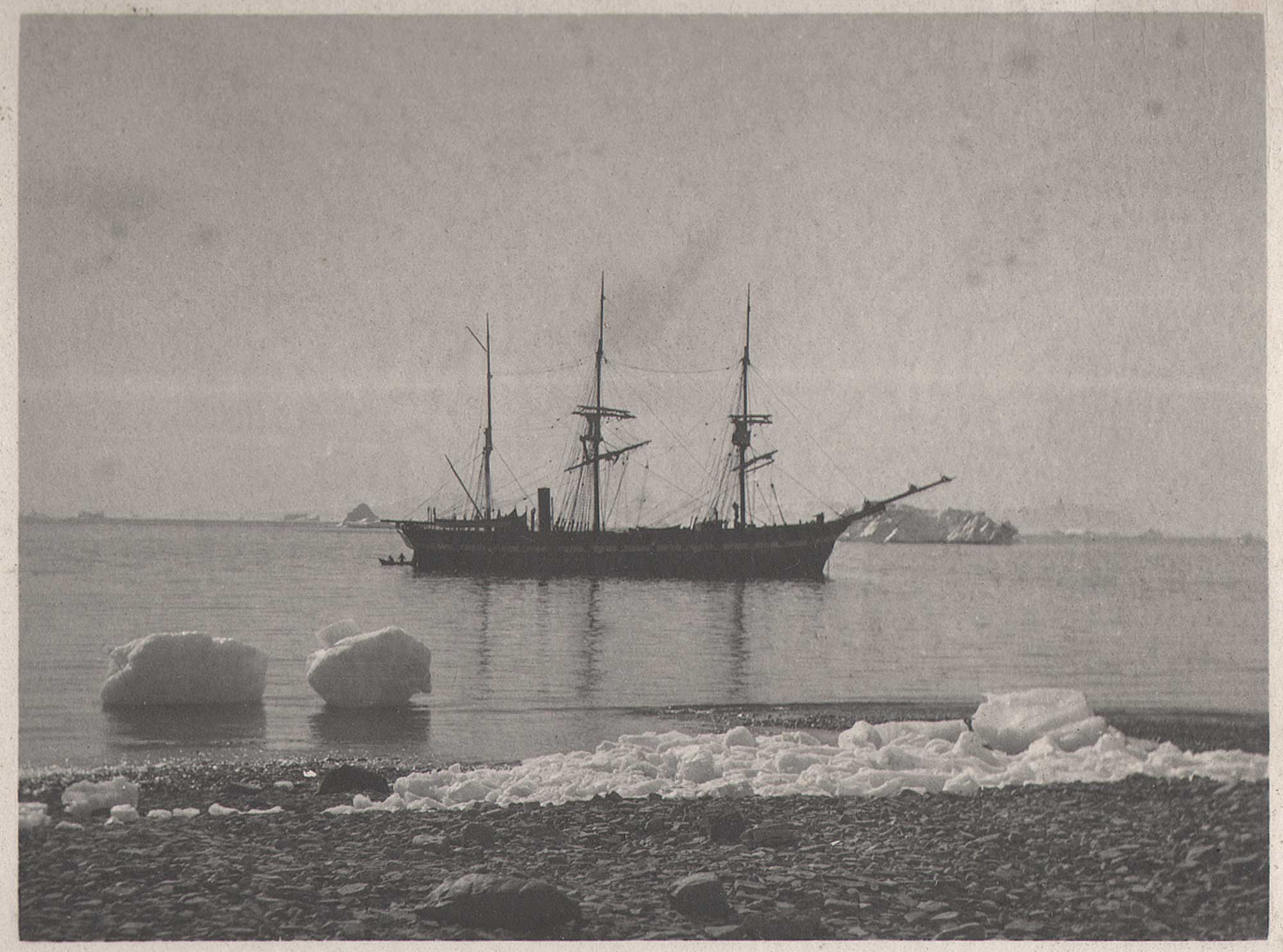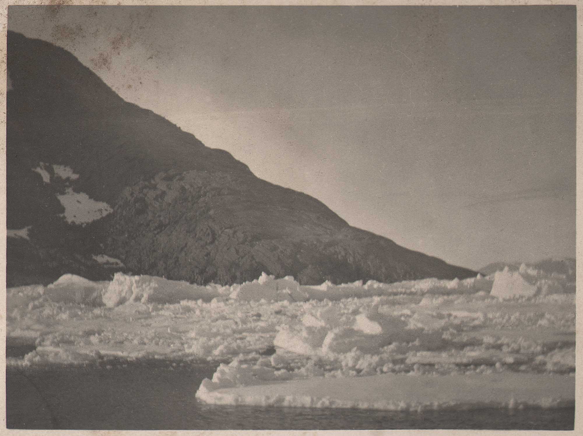 “Cape Le Conte, Farthest North”, 1901, printed (c. 1901-05) Attributed: Limond Corbin Stone, (1873-1951) American, bromide print, 7.2 x 9.7 | 10.2 x 15.0 cm. The Erik found itself navigating treacherous ice flows while in Greenland. From photographer Bement’s diary in Boreal Ties: “The ship was forced in a niagara of ice for fully five miles, at great peril sweeping everything before it.” This photograph depicts Herschel Bay ice flows. A variant image shows the same view from the Erik & published as a halftone titled “Herschel Bay and Cape Le Conte, its northern Point” in Harper’s Weekly, October 26, 1901, p. 1075. From: PhotoSeed Archive