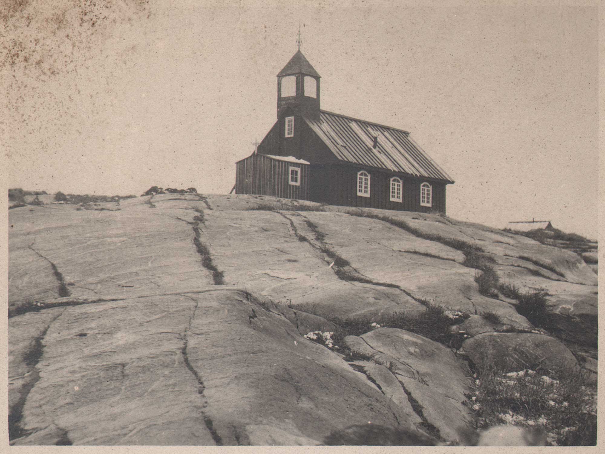 “Church at Godhavyn”, 1901, printed (c. 1901-05) Attributed: Limond Corbin Stone, (1873-1951) American, bromide print, 7.2 x 9.7 | 10.2 x 15.0 cm. A cross can be seen above the separate entrance to this wood church located on Disko Island. Known today as Qeqertarsuaq, (historically known as Godhavn) it is a port and town in Qeqertalik municipality, located on the south coast of Disko Island on the west coast of Greenland. The church, which may not be standing today, was built at least 25 years earlier from when this photo was taken by Stone, appearing as a photographic plate by George Rexworthy De Wilde (1832/3–1906) in the 1876 volume Cruise of the ‘Pandora’. Extracts from the Private Journal kept by Allen Young. London: William Clowes & Sons. From: PhotoSeed Archive